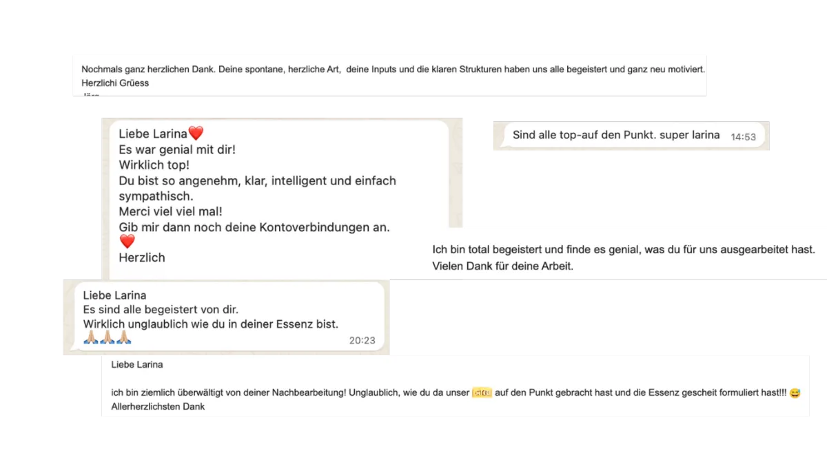 "Ganz ehrlich: Ich habe schon so viele Leute bezahlt, die mir Content schreiben sollten – aber niemand hat es geschafft, meine Essenz wirklich einzufangen. Larina war die Einzige, die sich stundenlang durch meine Aufzeichnungen gehört hat. Und erst da habe ich gemerkt: Wow, genau das bin ich!